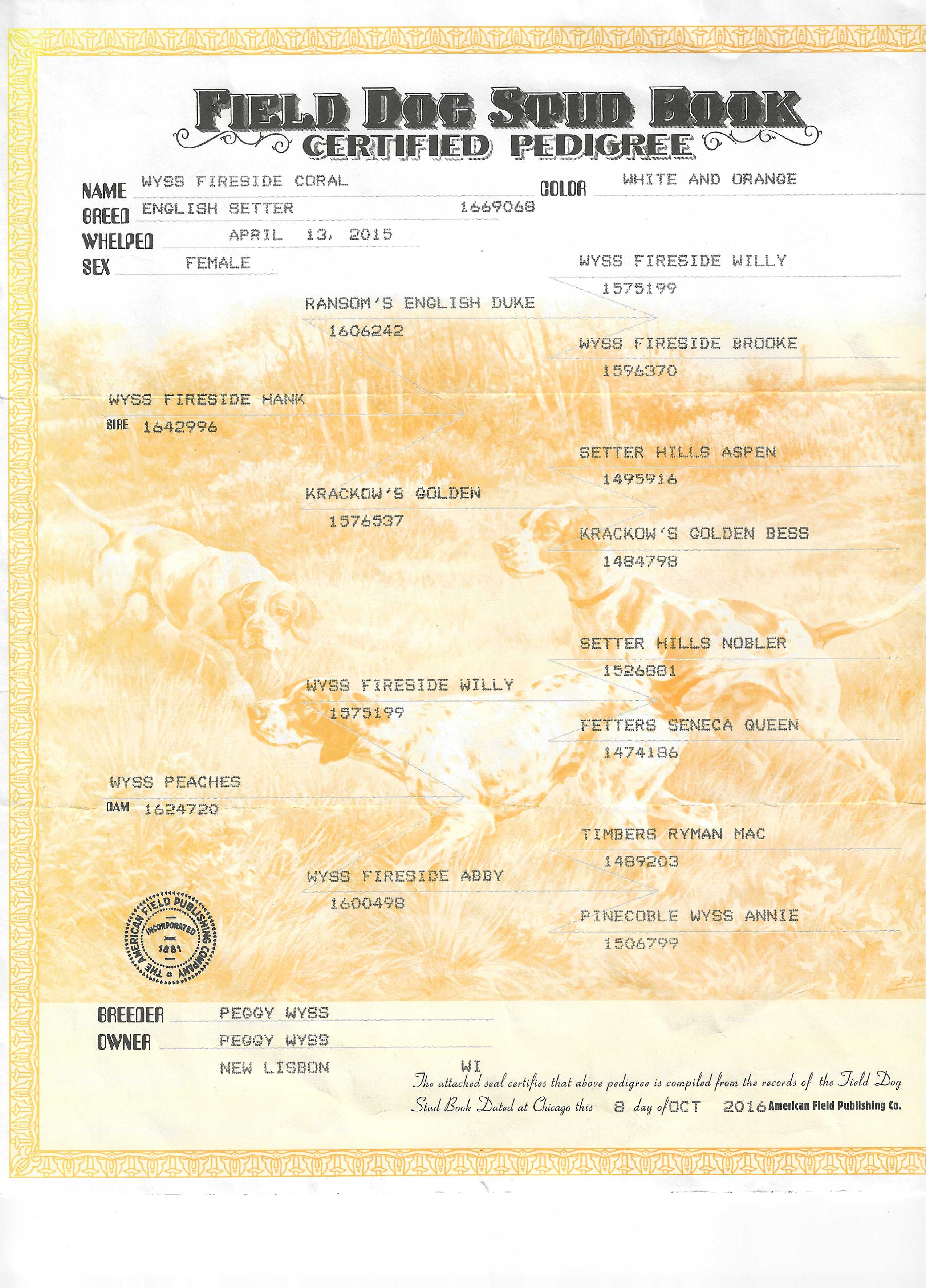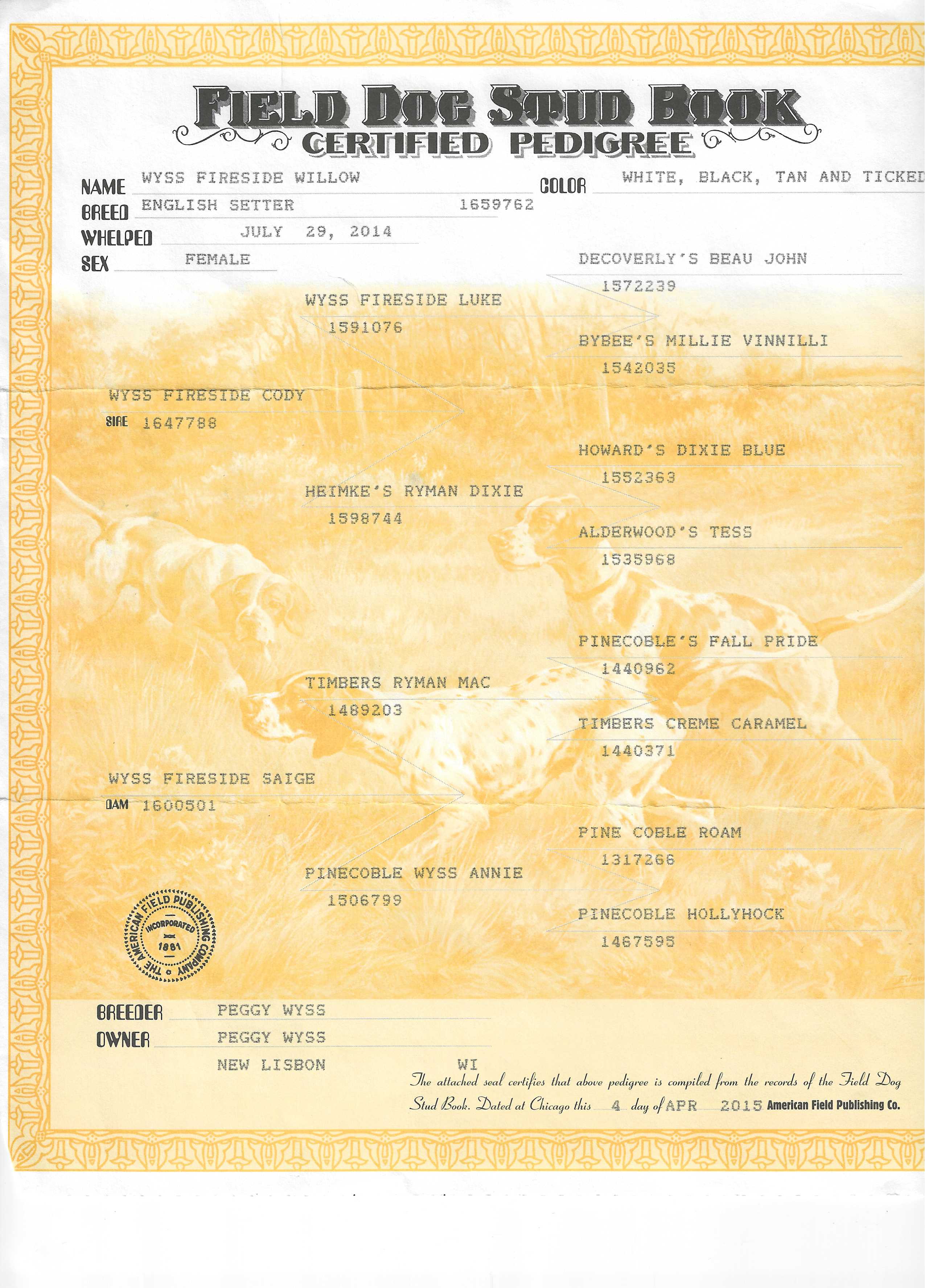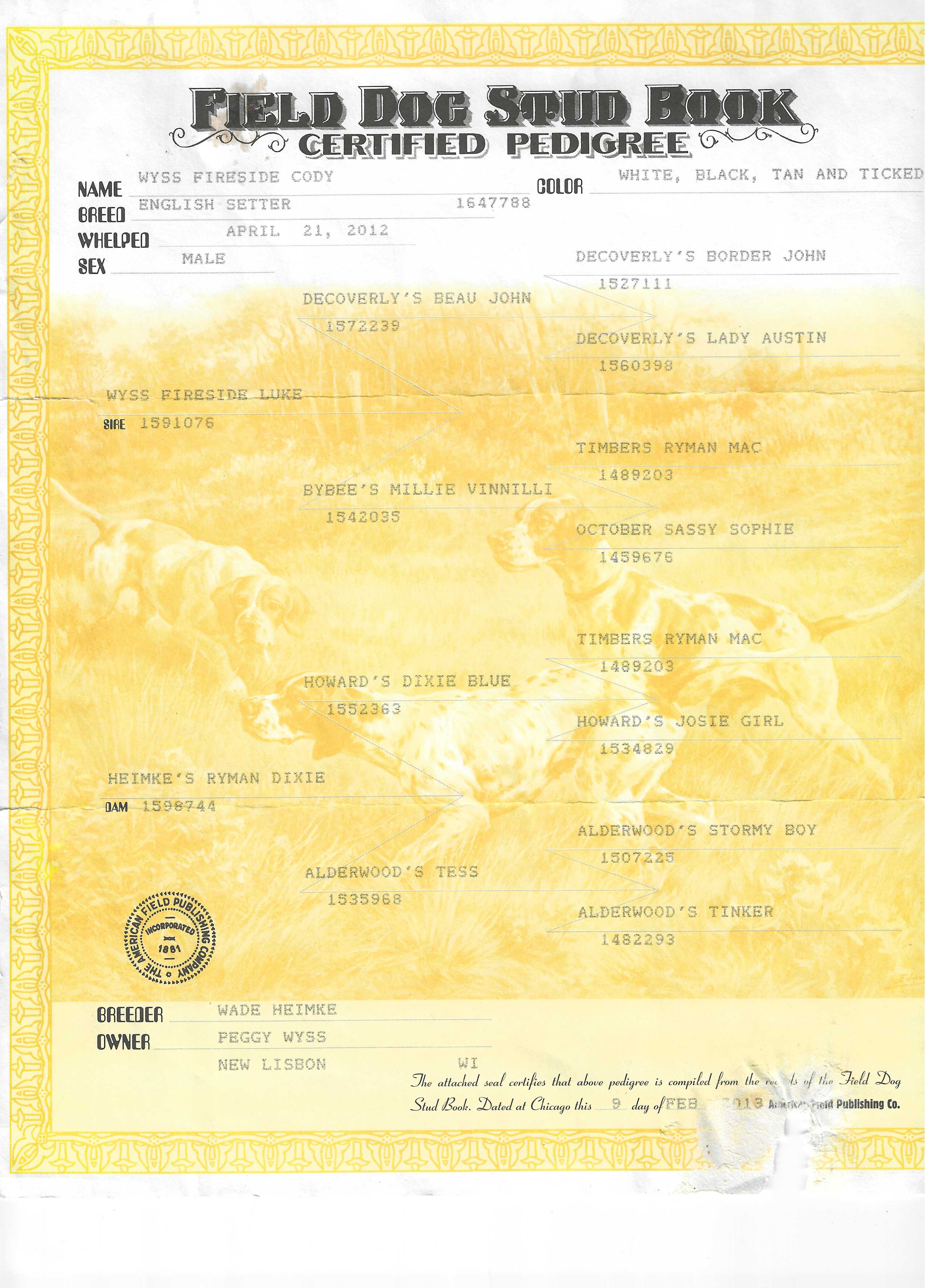 WYSS' ENGLISH SETTERS  Ryman / Old Hemlock